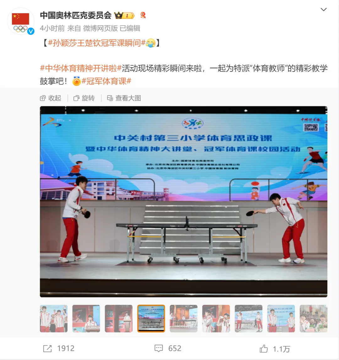 这堂“体育课”上,王楚钦、孙颖莎分享了自己从练球到登上奥运会最高领奖台的成长经历,鼓励大家要不畏艰难、勇于战胜自己。两人还通过趣味颠球的方式进行了乒乓球技术的展示,并与学生代表现场切磋球技,耐心教授正、反手挥拍的动作要领。