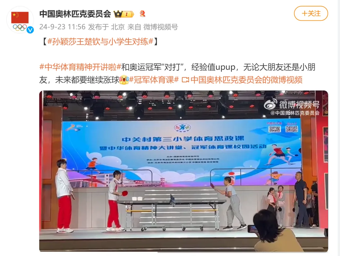 今天上午,北京市海淀区中关村第三小学迎来了两位特殊的“体育老师”。奥运会乒乓球冠军王楚钦、孙颖莎来到校园,全场学生坐不住了,尖叫欢迎。