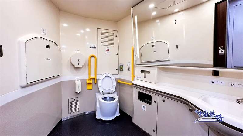 一是设备设施更加完善。复兴号智能动卧列车全列编组16辆,由2辆座位车、1辆餐车/卧铺车、13辆卧铺车组成,与现有京港、沪港和谐号动卧相比,总定员有所增加,共652人,其中特等座24人、二等座90人、卧铺538人。8号车厢专门设置1个无障碍卧铺包间和1个无障碍卫生间,同时在服务设施上增加盲文标识,更好地服务残疾人旅客;为解决终到站前卫生设施及开水炉集中使用问题,全列卫生间增至42个、电开水炉17个;所有座椅均基于人体工程学进行了优化,特等座椅增加了可调节头靠,在扶手小桌板基础上增加使用体验更好的背板小桌板,二等座椅在靠背上增加了USB充电接口,乘坐体验更好;每个铺位均设置集成式多功能服务装置,包括阅读灯、衣帽钩、裤架、插座、置物盒、氛围灯等设施,便于旅客使用。同时,采用以太网控车、车载安全监测、手持移动终端巡查等智能运维系统,进一步提升了列车运行安全等方面的智能化水平,安全可靠性更强。