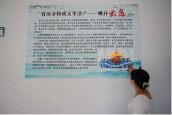 云舞讲究集体配合。每次带孩子们练习,姚慧一一展示云舞道具,说明使用方法、现场示范,传授跑云、穿云、对云的基本舞步,解说要领、修正舞步。传承人数不足,是姚村镇非遗传承的一大难题。姚慧说:“有时,把中心学校三到六年级学生全部集中在一起选苗子,勉勉强强才能凑足表演人数。”