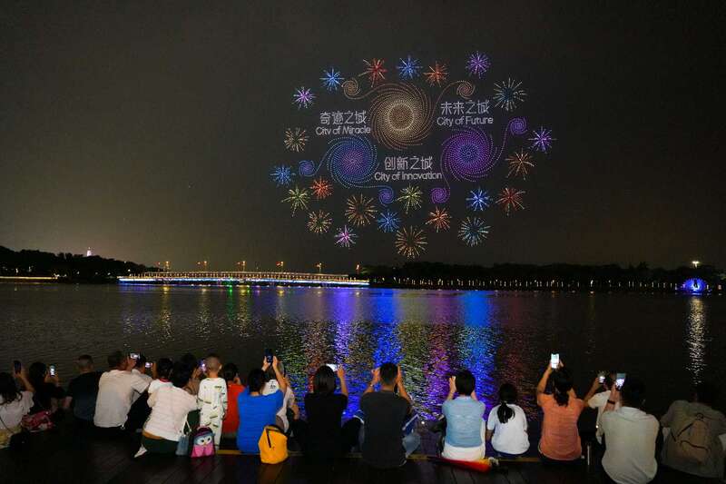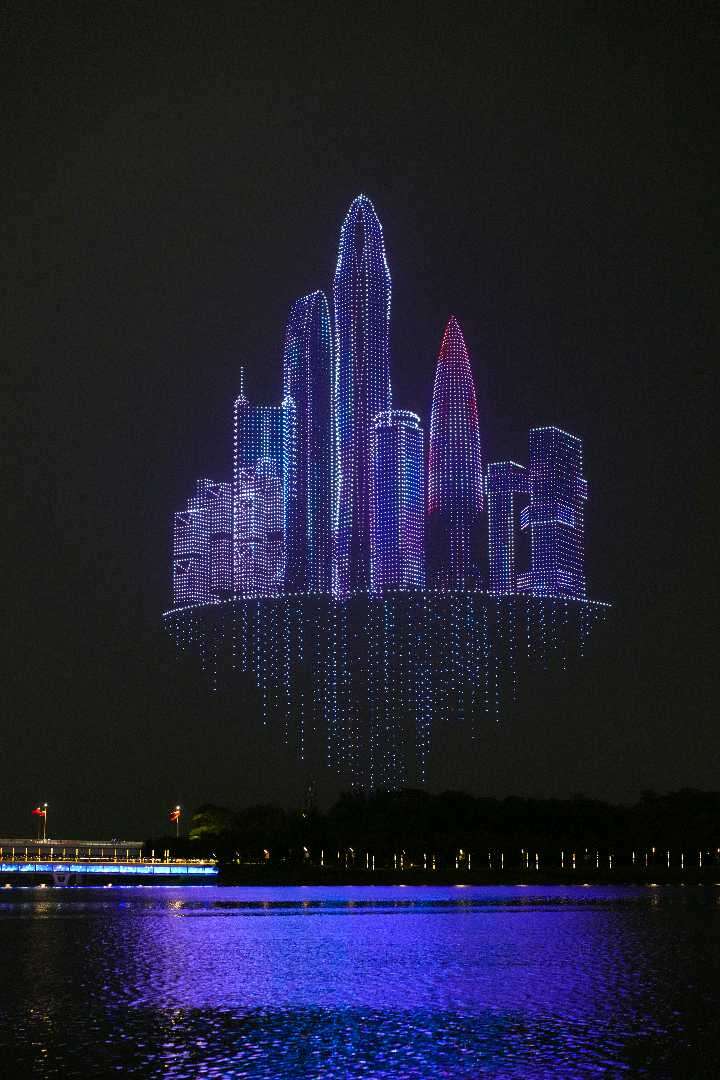 中国青年报客户端讯(中青报•中青网记者 武欣中)9月26日晚,以“天空之城 大有可能”为主题的深圳无人机国庆启幕大秀在深圳湾公园上空绽放,10197架无人机同时升空,为市民游客带来了一场科技与艺术完美融合的视觉盛宴。