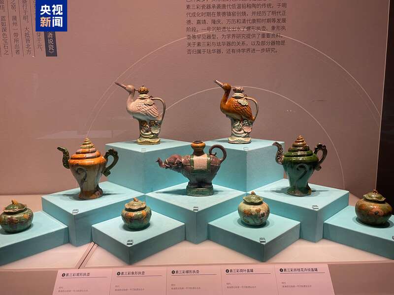 珐华彩瓷器是此次展览最受瞩目的明星展品,总共有13件(套)精品展出。考古发现的珐华彩瓷器十分罕见。一号沉船出水的精美艳丽的珐华彩瓷器,在沉船中是首次发现。这些考古新发现,证明了明代中期景德镇珐华彩瓷器外销,为寻找窑址、厘清来源提供了实物资料。还有“丙寅年造”款红绿彩碗,证实一号沉船属明代正德时期,对研究南海贸易航线具有十分重大的价值和贡献。