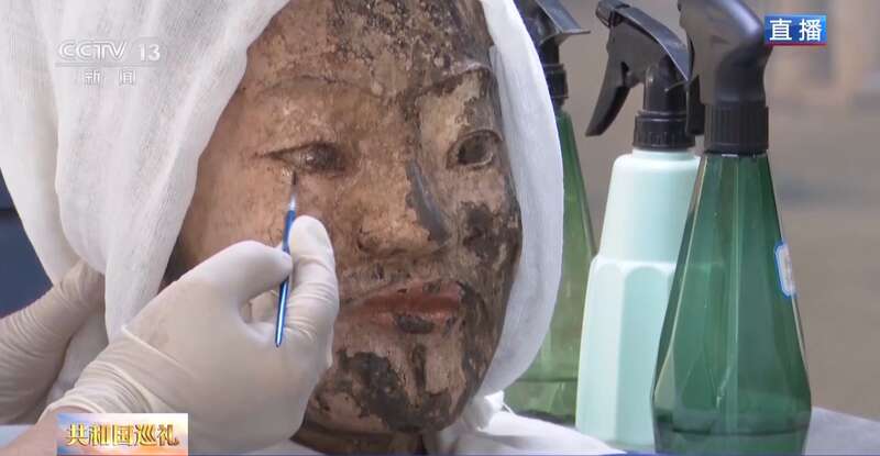 陕西台记者 张佳奇:通过多年探索,工作者找到了两种高分子的聚合材料,聚乙二醇和聚氨酯的乳液,现在考古工作者正在用联合加工剂,对彩绘的表面进行修复。经过保湿和加固的彩绘,才能够永久留存下来,那么除此之外还有一些更高新科技的手段应用在实验室里。