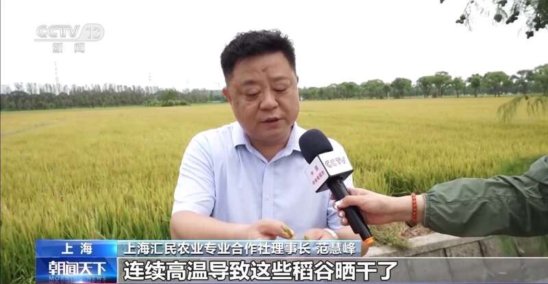 上海汇民农业专业合作社理事长 范慧峰:8月份正好是水稻灌浆期,连续高温导致这些稻谷全部晒干了,都不长谷子了。