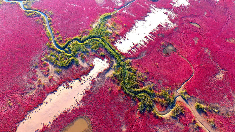 周立城:欢迎大家在政府开放日来到黄河三角洲自然保护区参观,大家今天到的就叫“红毯迎宾”,实际上是我们黄河三角洲的一种先锋物种,叫盐地碱蓬,它在这个季节是火红火红的,像一面巨大的红地毯铺展在海滩……