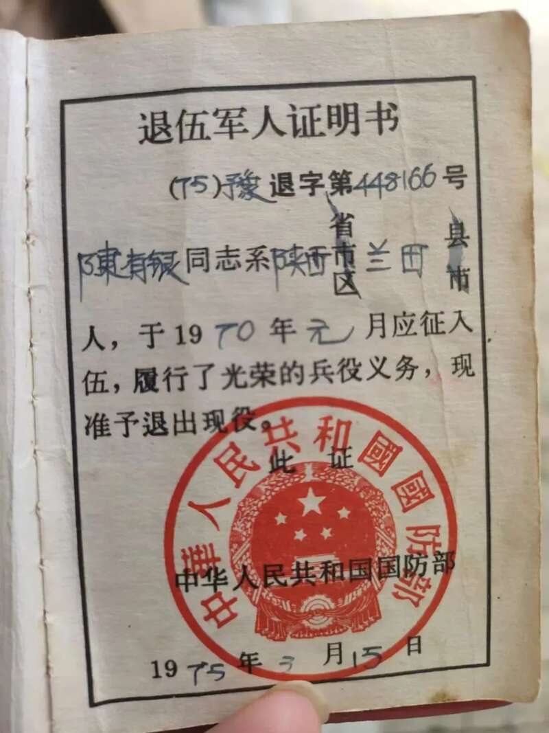 1970年,陈有银应征入伍