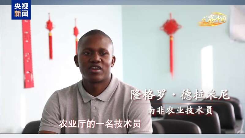 南非农业技术员 隆格罗·德拉米尼:100多年前,中国也是个落后的国家,中国的历史告诉我们,无论经历多少战争,中国人依然通过努力快速建设国家,将中国建设得如此现代化。