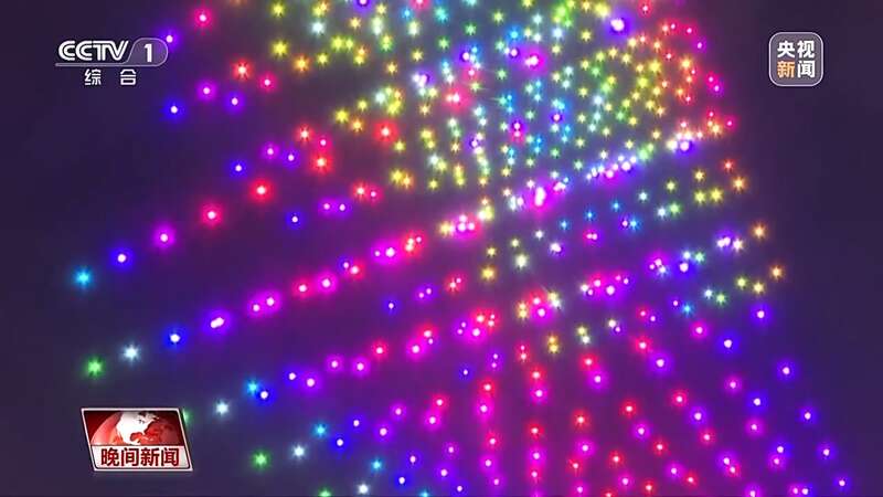 江苏盐城:无人机表演点亮夜空 祝福祖国