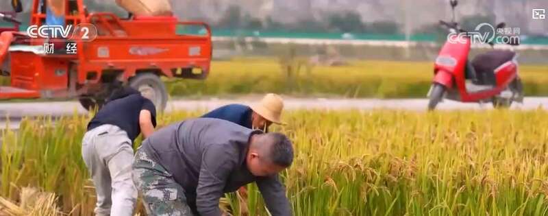 眼下,甘肃陇南栽种的水稻也陆续进入收割期。当地农户采取人工加机械的方式确保颗粒归仓。
