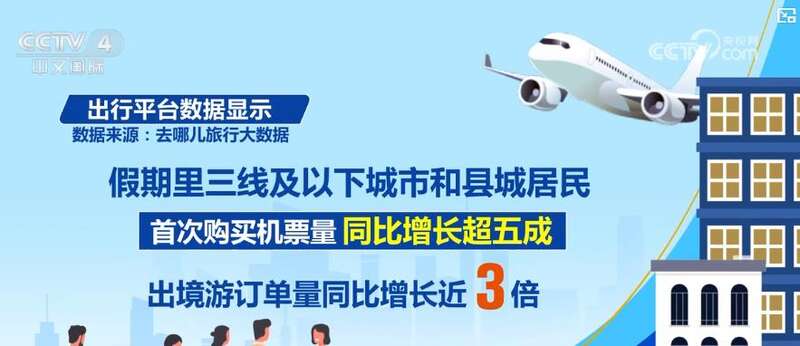 这个假期,出行更加便利,不少城市新建机场、新增航线,为游客提供更多选择。出行平台数据显示,假期里三线及以下城市和县城居民首次购买机票量同比增长超五成,出境游订单量同比增长近3倍。
