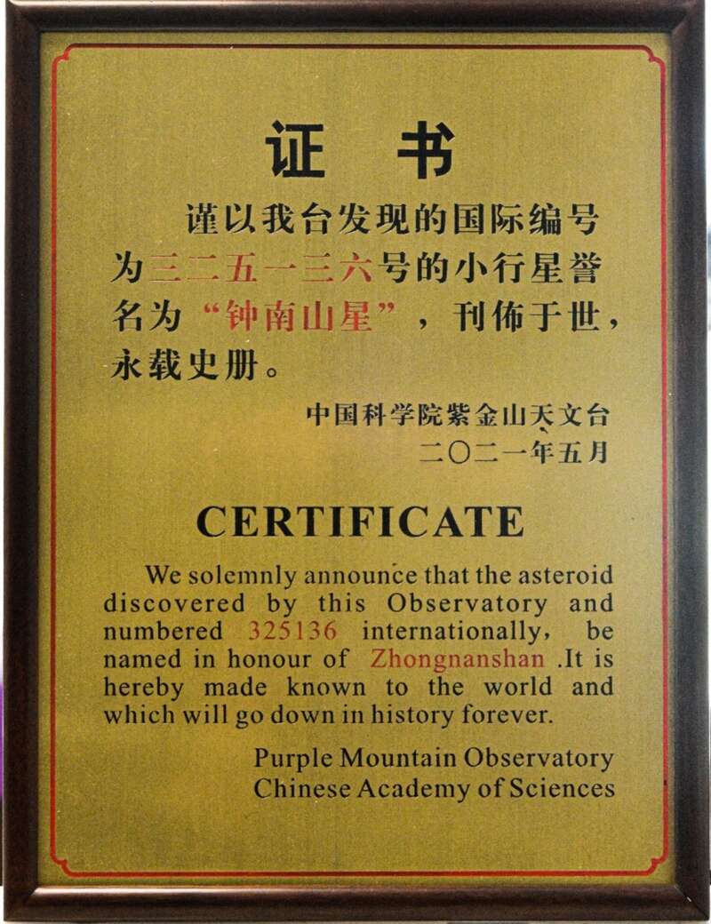 据了解,小行星是太阳系中唯一一类可以由发现者提名命名的天体,命名一旦获国际批准,将成为该天体的永久星名,具有国际性和历史性,是一项崇高的国际荣誉。为了弘扬钟南山院士的爱国奉献精神,何梁何利基金评选委员会向紫金山天文台推荐命名“钟南山星”。