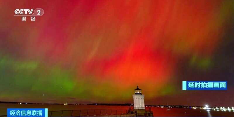 受此影响,10日当天全球多地出现极光。在美国缅因州,红色夹杂着绿色的极光在夜空中交相舞动。