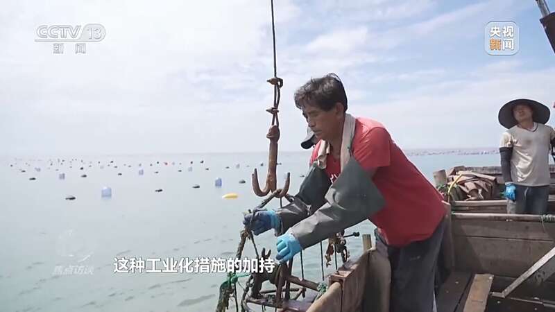 中国科学院海洋研究所研究员 张国范:“比如容量的控制,包括溯源技术、净化等工业化措施的加持。我们过去主要在黄海渤海进行养殖,现在扩展到福建东海以及广东、广西、海南南海,每年养殖面积达到100万亩,产量100万吨,产值100个亿。”