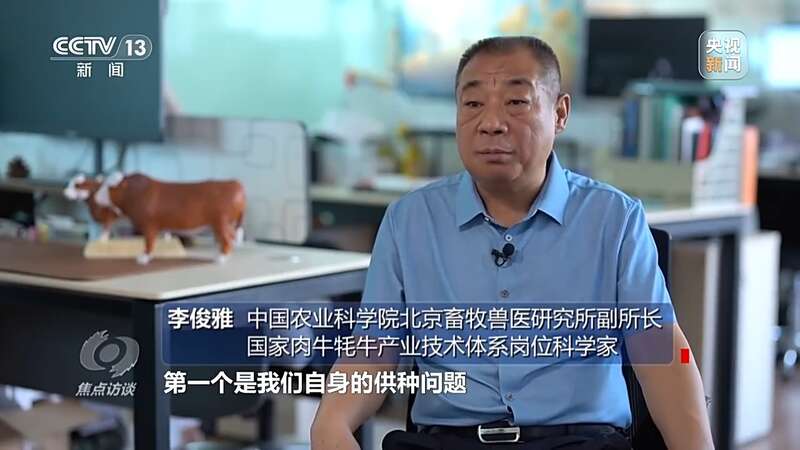 中国农业科学院北京畜牧兽医研究所副所长、国家肉牛牦牛产业技术体系岗位科学家 李俊雅:“核心种源依然依靠进口,存在很多问题,一是我们自身的供种问题,在特殊时期,如果我们不能从国外进口相应的优秀种质,我该怎么做;另外,我们引的这些国外的品种基本上都不是本品种的最优秀种牛或者种牛的冻精。我们必须要培育出满足我们国家主流市场供给型的品种。