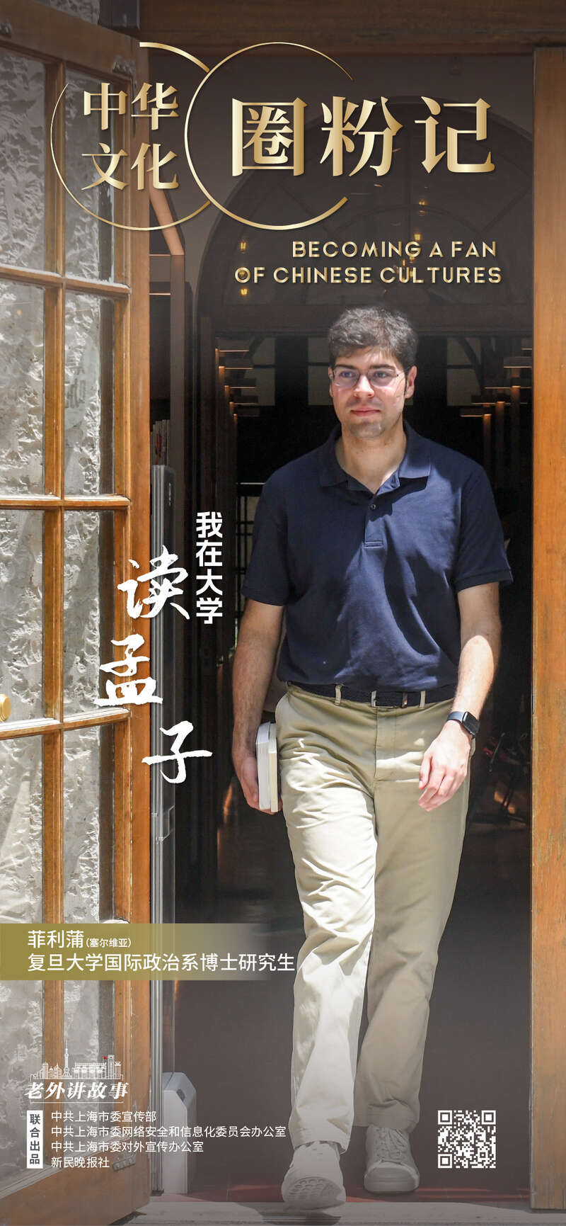 “天将降大任于是人也……”当塞尔维亚帅小伙面对镜头背诵起儿时学习的“《孟子》二章”,他想起多年前父亲带他漫步在复旦校园的草坪上,向他讲解中华传统文化的时光。如今,菲利蒲与从世界各地来到中国求学的留学生一样,学习中华传统文化,让他们对这片土地上发生的故事有了更多不一样的理解。