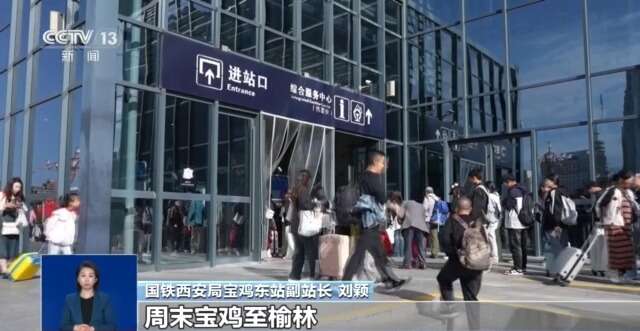 国铁西安局宝鸡东站副站长 刘颖:随着旅游市场的快速复苏和陕西省内城际通勤需求增强,从客票预售情况分析,周末宝鸡至榆林、节假日宝鸡至川渝方向客流较为集中。针对这一情况,我们灵活调整运力安排,通过“周末开省内+节假日开跨局”的组合式开行模式,让双层列车的大运量特点得到最大程度发挥。