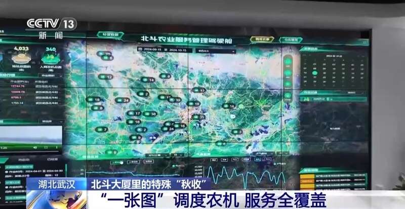 总台央视记者 蒋树林:智慧农机之所以能够高效运转,都是靠着北斗农业服务管理驾驶舱。通过湖北农机“一张网”可以实现应急调度,比如说在秋收的关键期如果某一个地方遭遇集中的连续降雨,就可以及时地进行调度,保障秋收秋种顺利展开。