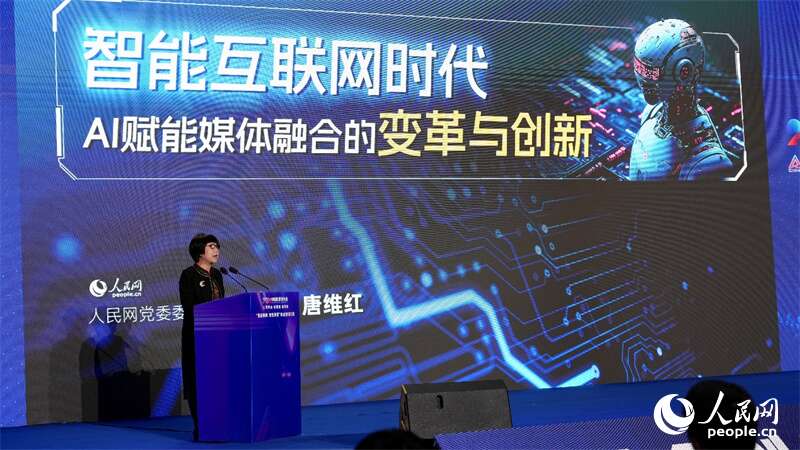 “近年来人民网积极加强以人工智能为代表的内容科技的应用,以数据驱动逐步向智能业务拓展,全体系地向智能互联转型升级。”发布会现场,人民网监事会主席、研究院院长唐维红发表题为《智能互联网时代AI赋能媒体融合的变革与创新》的主题报告,以“新媒体+报网融合”赋能内容创作、《领导留言板》的智能化升级、AI展演馆先后落地武汉和南宁等为案例介绍了人民网在新技术环境下的媒体融合新探索。