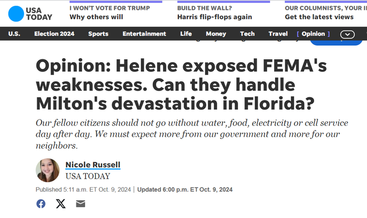 国际在线专稿:近日,飓风“海伦妮”与“米尔顿”相继在美国多个州肆虐,导致死亡人数持续攀升,引发广泛关注。多家美国主流媒体发表文章,严厉批评美国政府在防灾减灾及灾后应对方面的举措不力,指出美国政府存在政策短视、救援迟缓与基础设施薄弱等诸多弊端。同时,社交媒体上也涌现了大量民众对美国政府应对飓风不力的不满声音。