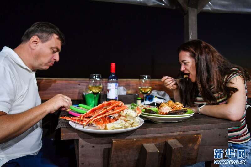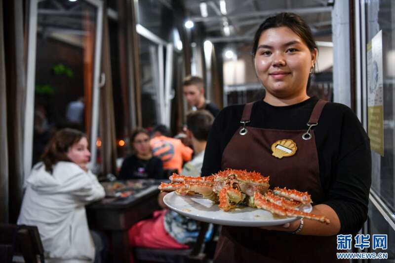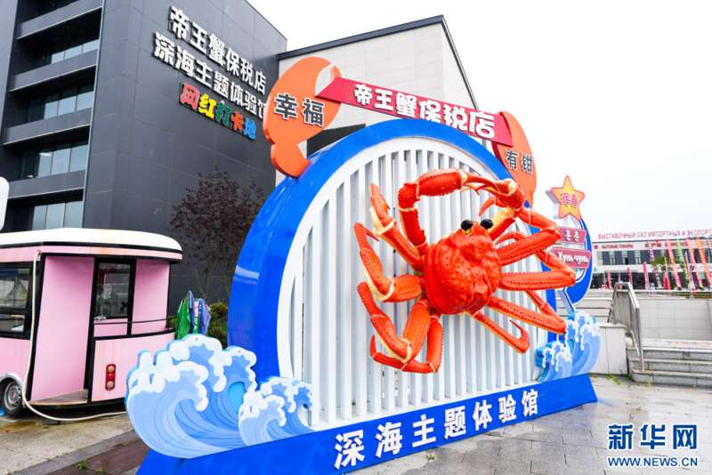 俄罗斯帝王蟹丰富了中国人的餐桌,也带动了中俄边境地区的合作与发展。位于珲春的东北亚跨境电商产业园,一家占地超过1000平方米的帝王蟹保税店于今年年初正式开业。该店负责人王海说,他们与俄罗斯蟹业集团深度合作,深海捕捞的帝王蟹“原车原水原货”发到店内,“个儿大鲜美,价格实惠”。开业以来,人流不断,“最高峰时每天能接待上万人。”暂养池内,一只只帝王蟹吐着水泡、挥舞巨钳,旁边的工作人员忙着打包,而电商主播在暂养池旁边通过直播平台向全国网友推介。