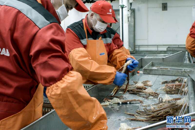 金秋时节,俄罗斯远东堪察加半岛附近的海域上,俄罗斯蟹业集团的捕捞船在风浪中紧张作业,工作人员对捕捞的帝王蟹进行收网、挑选、加工、装箱、储存,准备装运。一整套流程在捕捞船上有条不紊地进行……