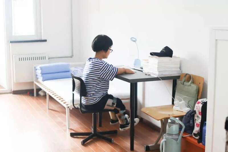 对于身体特殊的她,在校的学习生活十分不易,学校专门为她购置了较为方便的桌椅,还配置了一张落地的矮床、衣柜、高度较低的洗漱台等硬件,并向其发放助学金,帮助她克服生活中的困难。