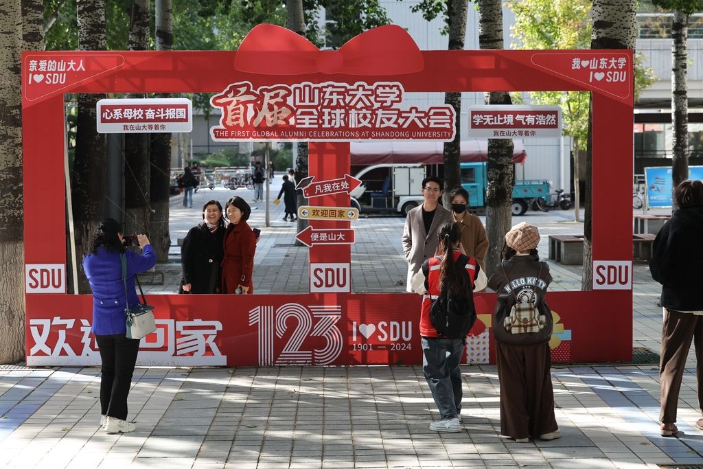 2024年10月19日,济南,山东大学,校友回到母校,打卡拍照,找寻青春的记忆。