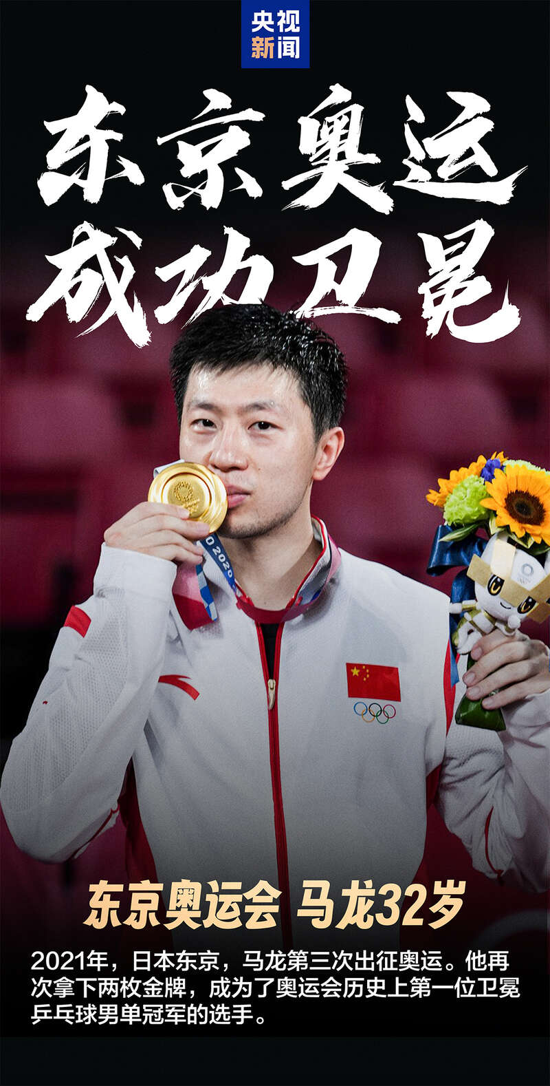 五年后,马龙在东京奥运会上卫冕男单冠军,成为“双圈大满贯”球员。