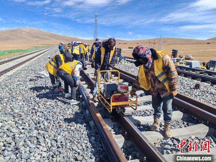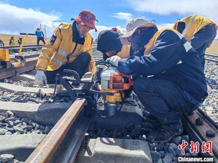 由中国铁路青藏集团有限公司(以下简称青藏集团公司)格尔木工务段重点维修车间负责的开心岭站站场缓冲区换轨改造施工正在稀薄的氧气中进行。