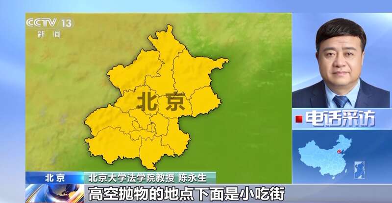 北京大学法学院教授 陈永生:在本案中,高空抛物的地点下方是夜市小吃街,人流非常密集。周某在6天时间里,多次从楼房高层向下投掷砖头等物品,而且在案发的这一次,他向楼房下抛掷了8块砖头,危及了不特定的多人的生命、健康。