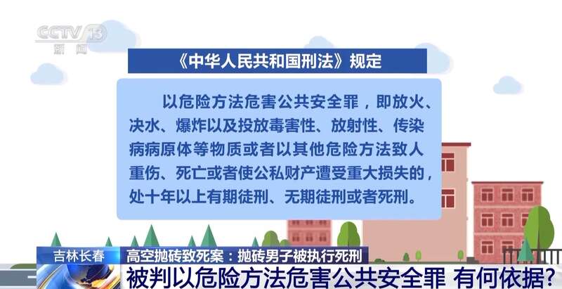 2023年6月,28岁的小娄在吉林省长春市一夜市小吃街被周某从高空抛下的砖头砸中,不幸离世。抛砖男子此前还曾在高楼向外投掷两桶5升桶装水、三罐未开封可乐,砸到另外二人。同年12月13日,长春市中级人民法院判处周某死刑,剥夺政治权利终身;赔偿被害人家属丧葬费等四万余元。
