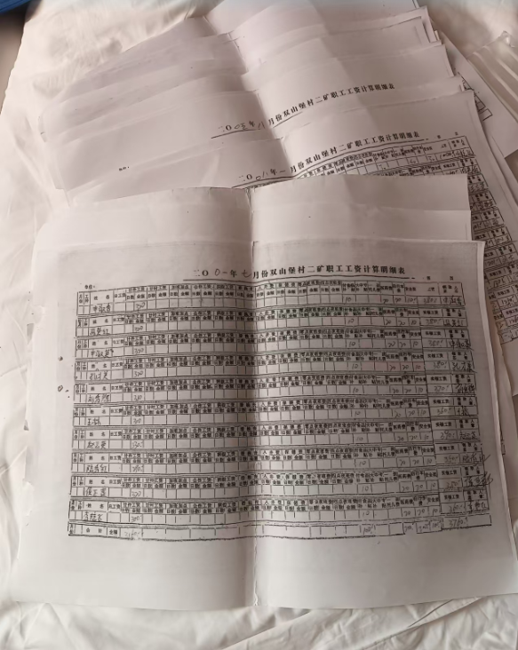 她上班在矿上负责登记,每天进矿在她那里签个字就下去了,没有签到、打卡考勤那一套。发工资也是发现金,虽然都要造表签字,但是考核结束、工资发完了交回矿上基本也就没啥用了。矿方也不会刻意保存这些材料,因此现在大家找到的这些登记表,也是断断续续不完整的。
