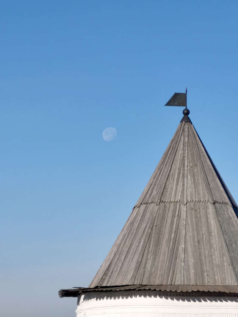 ↑这是10月20日在俄罗斯喀山克里姆林宫拍摄的月亮。新华社记者 赖向东 摄