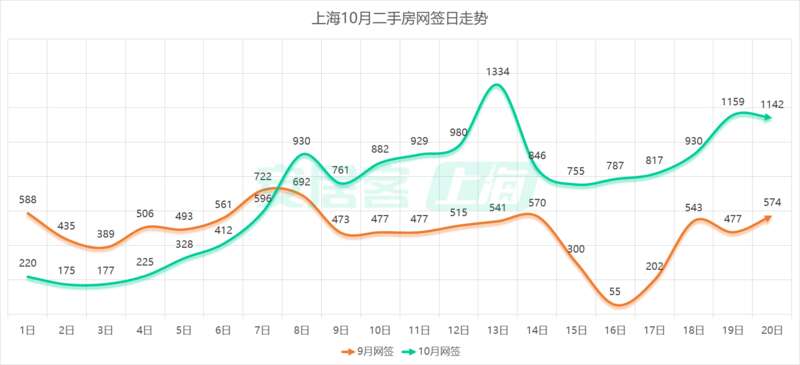 上海二手房周末网签量连续两天破千套。其中,10月19日(周六)成交1159套,10月20日(周日)成交1142套。