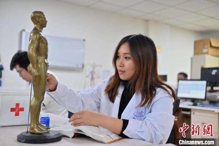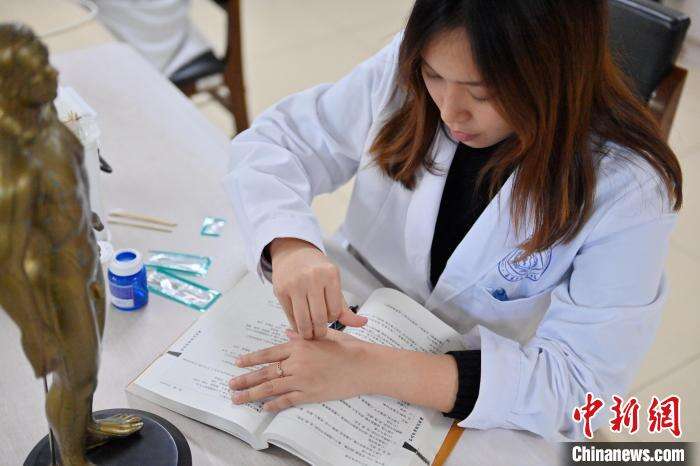 10月23日,吉林长春,林玉花在学习中医穴位。中新社记者 张瑶 摄