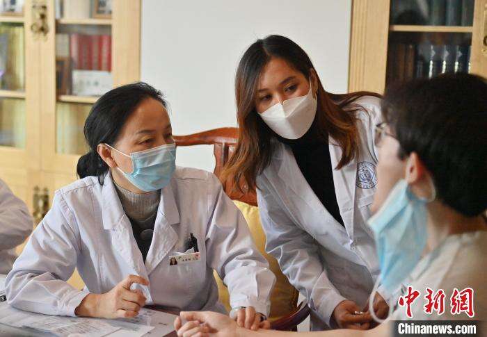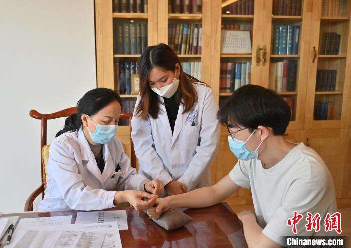 10月23日,吉林长春,老师在指导林玉花(中)为患者舌诊。中新社记者 张瑶 摄