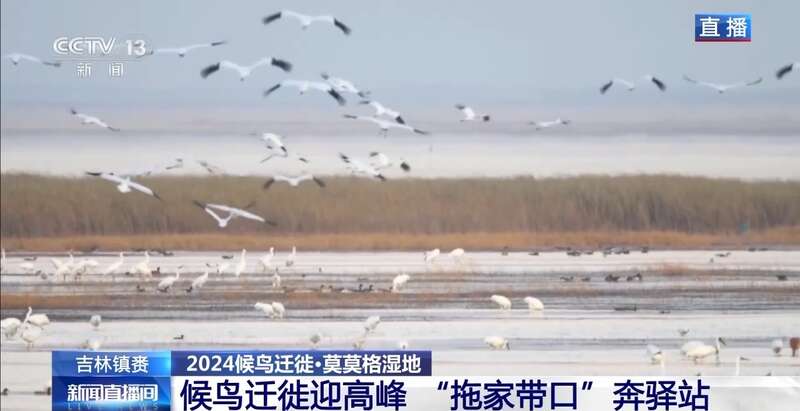 总台记者 王亚平:每年春秋两季,十余万只白鹤都会在莫莫格齐聚,种类有近三百种。经过科研工作者的前期监测,今年“十一”过后,已经有少量的白鹤、大雁抵达了这里。