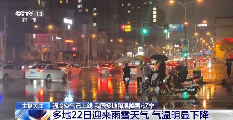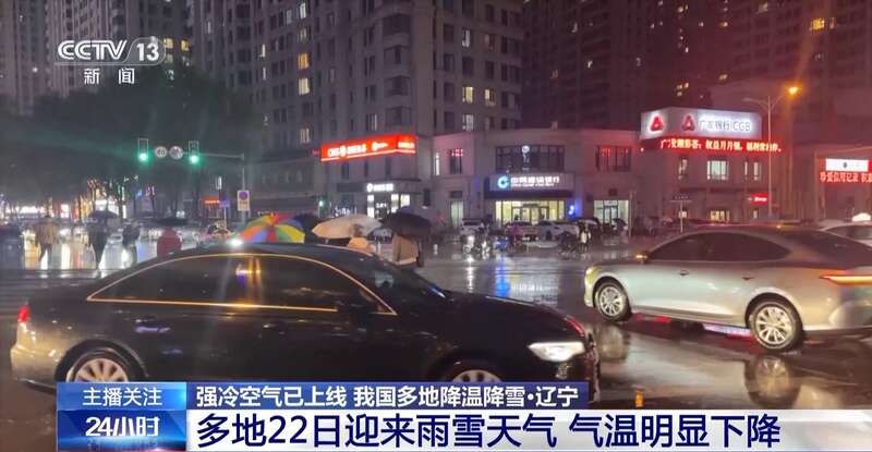22日,辽宁多地出现降雨天气过程,并伴随大风降温,从傍晚开始,辽宁沈阳、抚顺、本溪、丹东等地的局部地区转为雨夹雪或小雪天气。