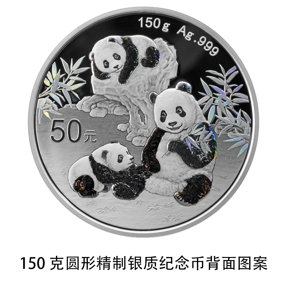 (十二)150克圆形银质纪念币为精制币,含纯银150克,直径70毫米,面额50元,成色99.9%,最大发行量30000枚。