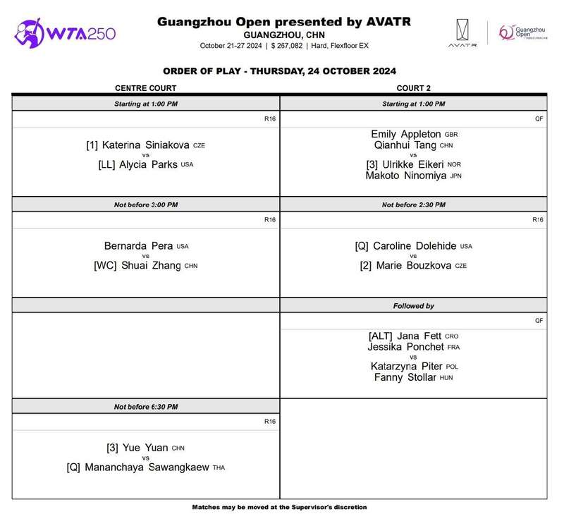 此外,卡萨金娜、肯宁、博尔特也将亮相。广网袁悦、张帅、西尼亚科娃登场。具体安排如下(均为北京时间)