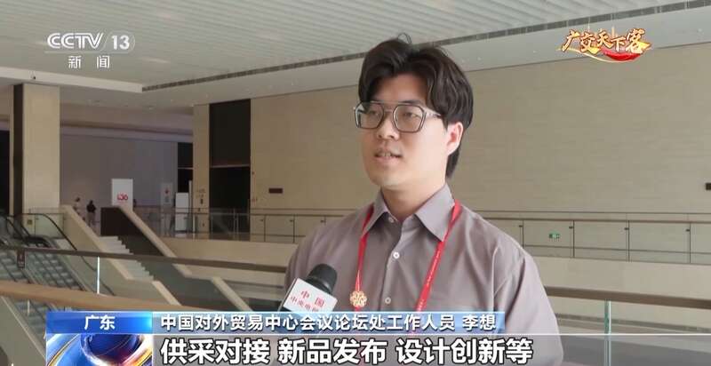 中国对外贸易中心会议论坛处工作人员李想:我们不断组织搭建行业论坛,供采对接、新品发布、设计创新等贸易促进活动,以服务贸易实务为导向,依托于广交会,服务于多个行业的综合专业优势,不断为外贸企业全方位赋能。