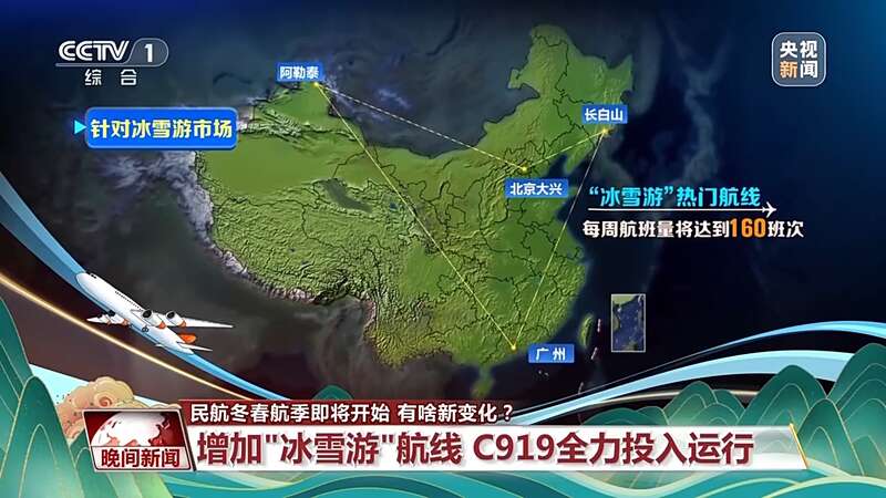 针对冰雪游市场,南航重点新增上海、西安、武汉、昆明等地飞往哈尔滨的航线,同时,广州、北京大兴等地往返长白山、阿勒泰等地的“冰雪游”热门航线,每周航班量将达到160班次。作为国产大飞机的全球首发用户,东航目前已有的8架国产大飞机C919全部投入新航季运行,日均航班量达30班。