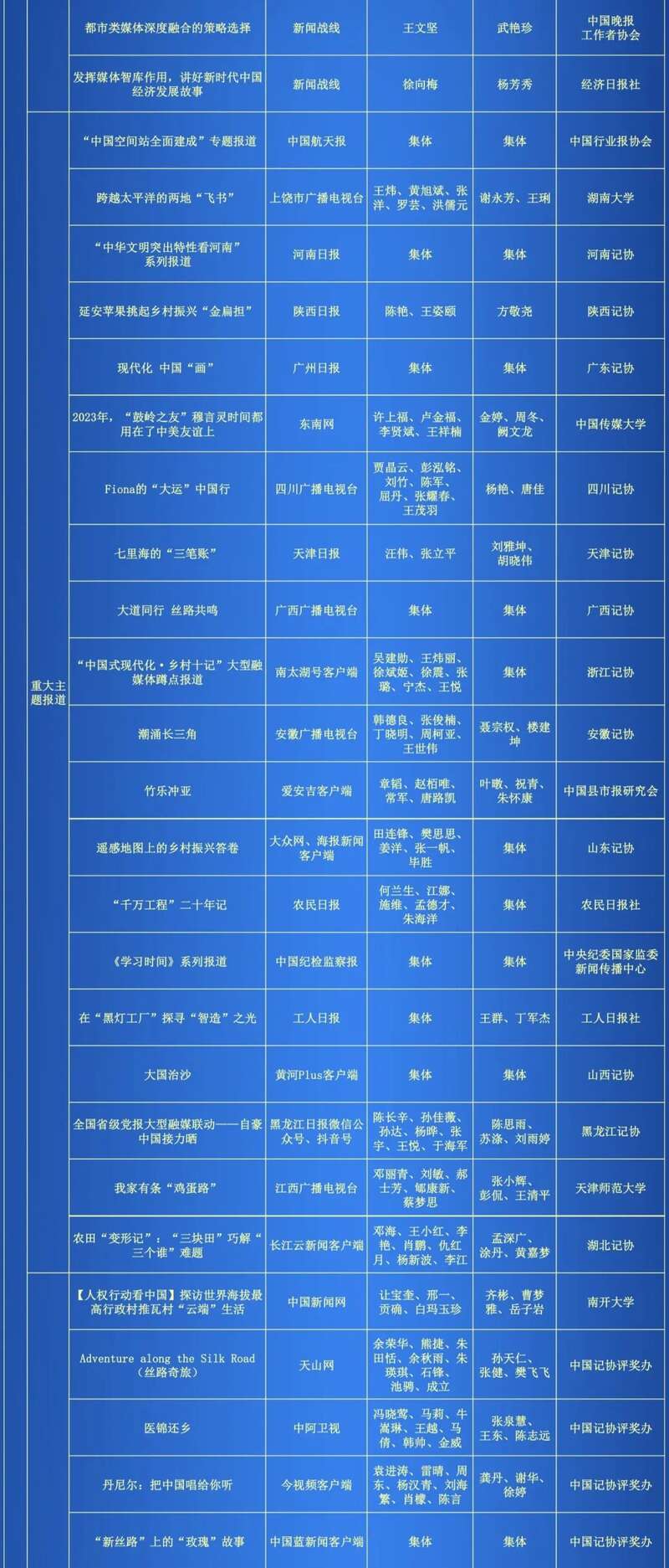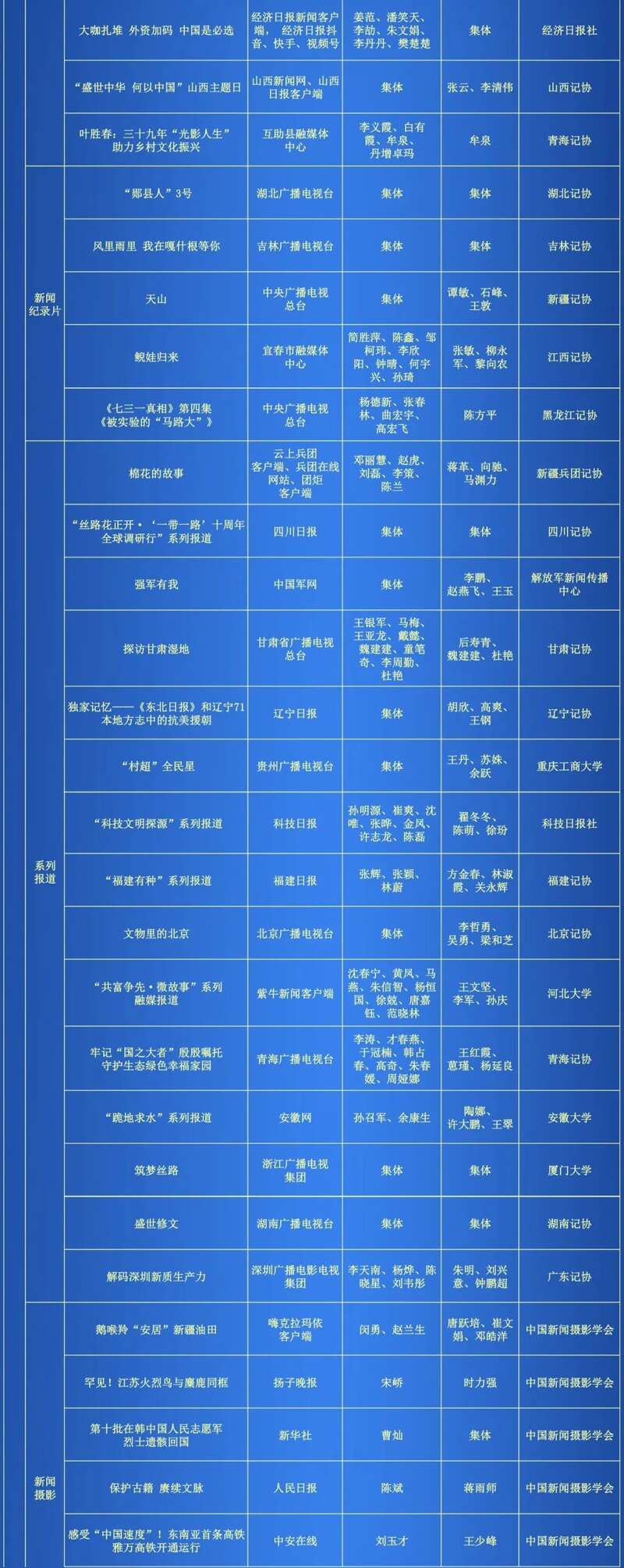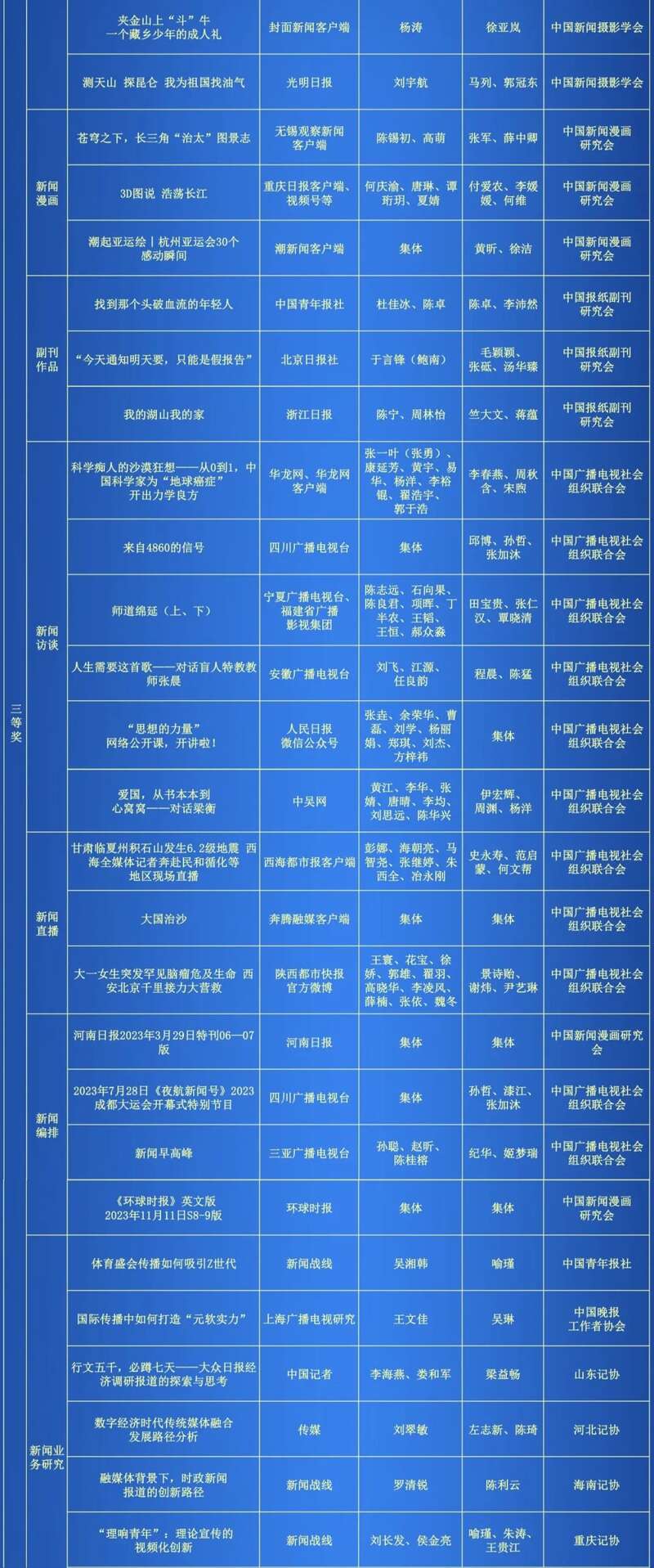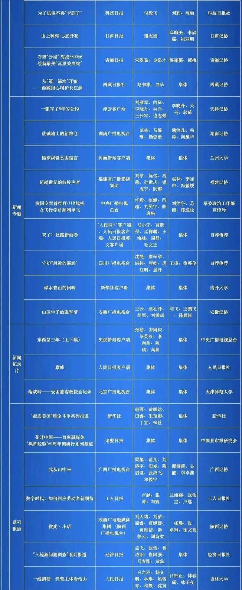 自10月29日起,中国记协在中国记协微信公众号、中国记协网公示第34届中国新闻奖、第18届长江韬奋奖评选结果。本届中国新闻奖共评选出378件拟获奖作品,其中特别奖4件、一等奖75件、二等奖111件、三等奖188件;本届长江韬奋奖共评选出20位拟获奖人员,其中长江系列10位,韬奋系列10位。同时公示的还有本届中国新闻奖、长江韬奋奖评选细则和评委、审核委员名单。