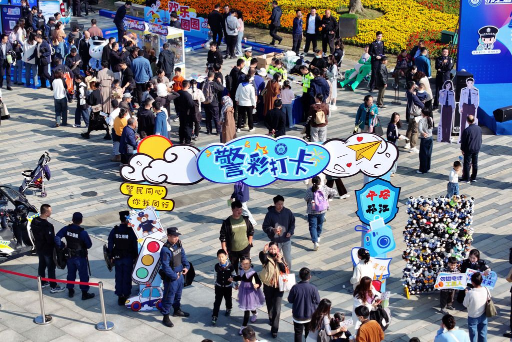 2024年11月2日,江苏扬州,警营开放日活动,市民打卡留念。