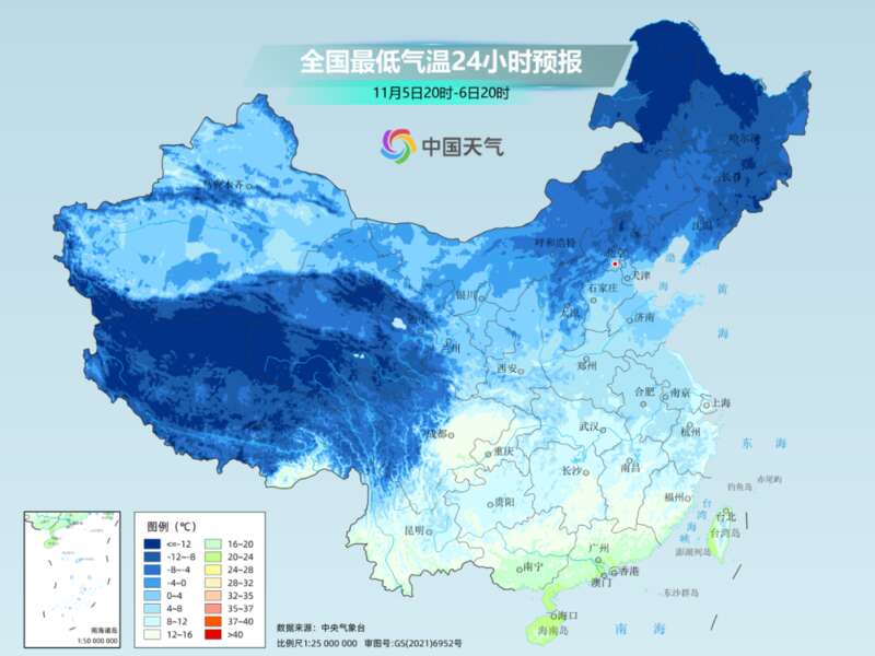 更冷的时候将出现在明天早上!包括江淮、江南东部、西南地区在内的不少地方明晨最低气温将降到本次过程的最低点。其中,长江流域多地最低气温或跌破10℃,东北大部地区则普遍降至不足-5℃。