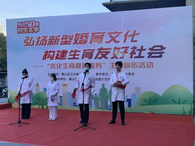 为全面落实推进安徽省50项民生实事工作,当天,合肥市蜀山区卫生健康委联合南七街道开展婚育主题宣传活动,通过艺术表演、亲子互动游戏、全民健身闯关、“优化生育政策”有奖知识问答、主题合影打卡等形式,趣味科普优生优育政策、托育服务政策和养儿育儿知识。此外,在民生实事宣传区,社区卫生服务中心的专业医生开展“健康口腔”“出生缺陷防治提升行动”民生实事惠民服务。