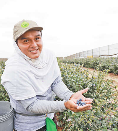 距离秘鲁首都利马约500公里的特鲁希略市甘博仙公司的蓝莓农场里,一片繁忙收获景象。甘博仙自2009年进入中国市场以来,对华出口产品种类和数量不断增加,蓝莓、牛油果、葡萄等产品受到越来越多中国消费者的喜爱。