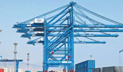 在利马以北约80公里处,中国港湾—中交四航局联营体承建的钱凯港项目现场,排列整齐的蓝色岸桥正繁忙运作,20余辆无人驾驶运输车将到港集装箱有条不紊地运送到港区堆场。