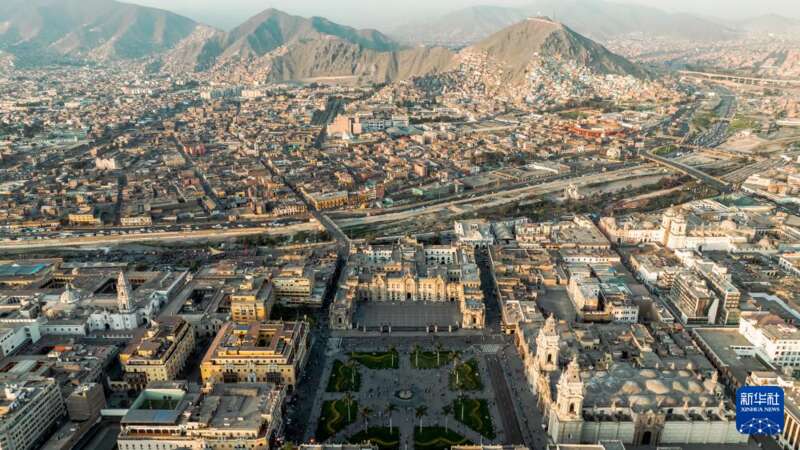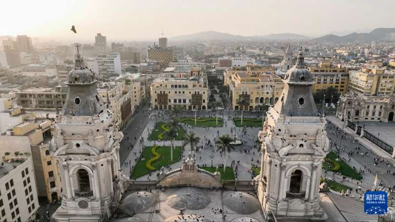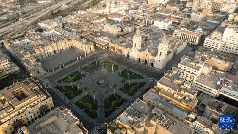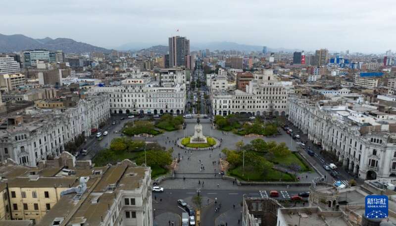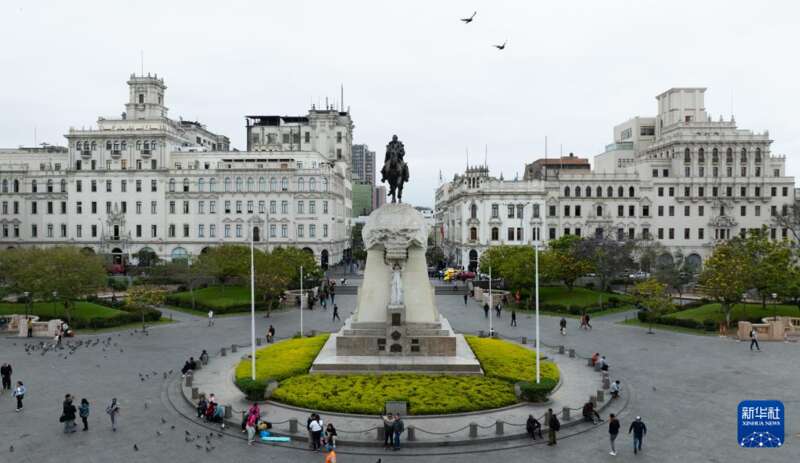 这是11月7日拍摄的秘鲁首都利马老城的圣马丁广场(无人机照片)。