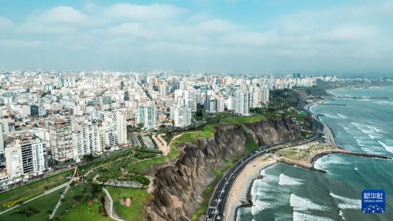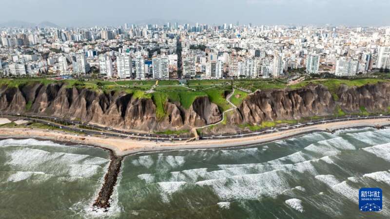 这是10月9日拍摄的秘鲁首都利马新城米拉弗洛雷斯区(无人机照片)。
